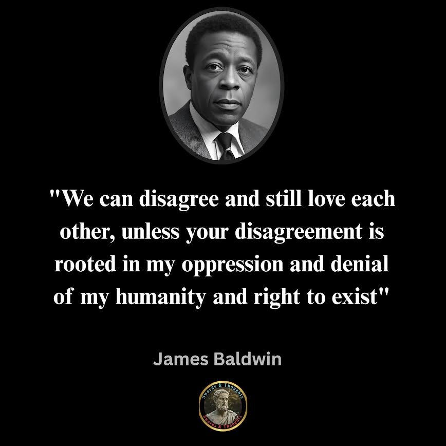 Does that mean that we must agree on everything in order to have peace with each other? No, we don't need to agree on everything to love each other and have fellowship. We can learn to tolerate differences that are not harmful to others. But as James Baldwin wrote, when our disagreement centers on the right of another to exist as G-d made them, then yes, we need to set boundaries and keep people safe. Where there is no agreement on this basic right, there can be no fellowship. Setting boundaries in this cases is not a lack of love: it's what will allow peacemaking to do its work and possibly allow forgiveness and love to emerge.